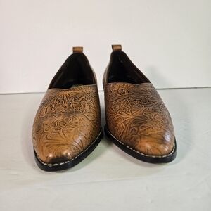 Vintage Coup D'etat LTD Floral Embossed Leather Western Heels Size 9