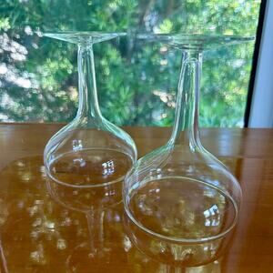 Set of 2 vintage clear glass coupes. Classic stemmed design with a rounded bowl, perfect for serving champagne, cocktails, or desserts.