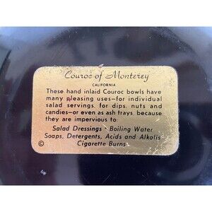 Vintage Couroc of Monterey CA Roadrunner Inlaid Serving Bowl Black Resin MCM 8"