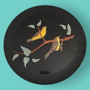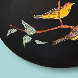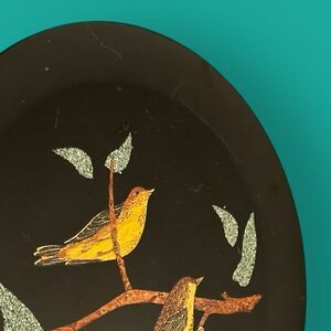 Mid 20th Century Black Birds on a Branch Couroc of Monterey Round Tray