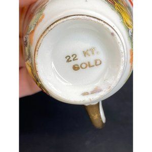 Vintage Courting Couple Demitasse Espresso Teacup Saucer 22KT Gold Flute Player