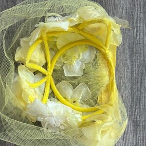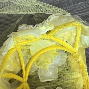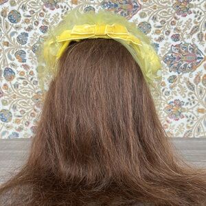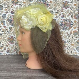 Vintage Couture 1950’s Fascinator Hat Yellow/White Flowers Veiled with/Felt Bow