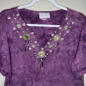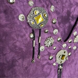 Vintage Cover Charge Purple Tie Dye Embellished V-neck T-shirt One Size Fits All