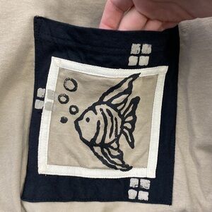 Vintage Cover Charge Tan Black Fish Art Tshirt Dress Size Small