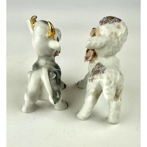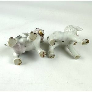 Vintage Cow And Lamb Figurines Ceramic White Gray Porcelain Gold Trim Japan