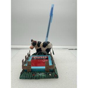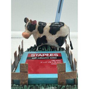 Adorable black and white cow that doubles as a pen holder (pen not included) and fenced in area that holds sticky notes.