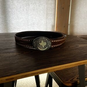 Vintage Cowhide Leather Belt Texas Buckle Size 42 Brown Authentic Rare KC