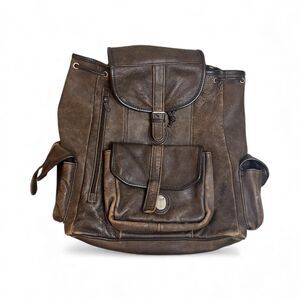 Vintage Brown Cowhide Leather Rucksack Backpack