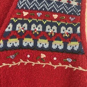 Vintage Cozy Red Wool Knit Vest with Heart Pattern