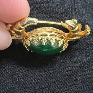Vintage Crab Brooch – Green Cabochon & Gold-Tone Metal