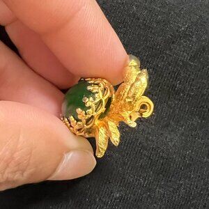 Vintage Crab Brooch Gold Tone Green Cabochon Cancer Zodiac Pin Costume Jewelry