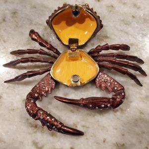 Beautiful burgundy and golden enameling, green Swarovski Crystal eyes, clear Swarovski Crystals sporadically on legs and body on this adorable crab hinged/magnetic trinket box.