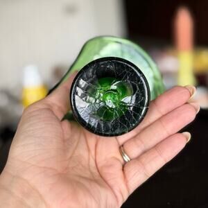#crackleglass #vintageglass #hatvase #greenerydecor #vintagevase #midcenturymodern #glasscollection #handblownglass #bohovibes #colorpop #emeraldgreen #funkyhomefinds