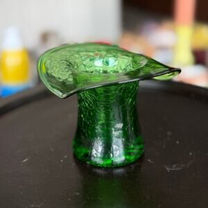 Vintage Crackle Glass Hat Vase – Emerald Green