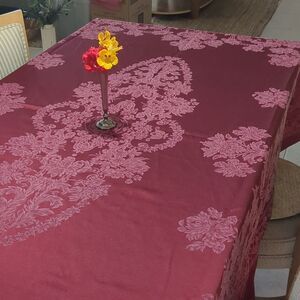 Vintage Cranberry Damask Tablecloth 56 x 80