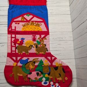 Vintage Cranston Christmas Farm Animals Santa Stocking 18.5"x13.5"