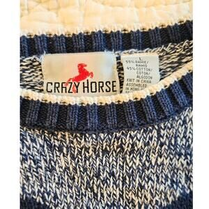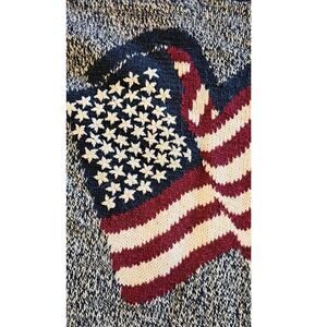 Vintage Crazy Horse American USA Flag Knit Pullover Sweater Long Sleeve Cozy