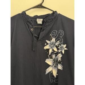 Vintage Crazy Shirts Hawaii Shirt Mens Small Henley Pullover Floral Navy
