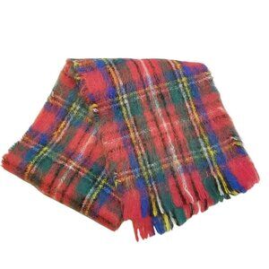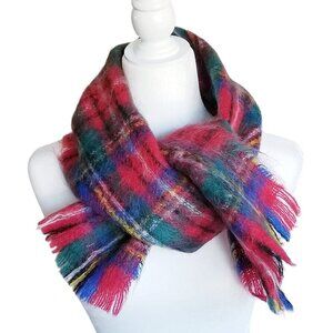 Vintage Creagaran Mills Red Plaid Scottish Mohair Wool Blend Scotland Scarf