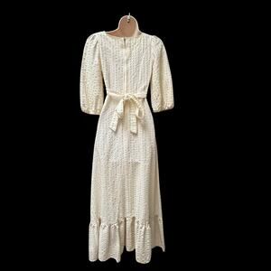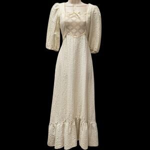 Vintage Cream 1970s Terri Juniors California Maxi Prairie Dress with Back Tie