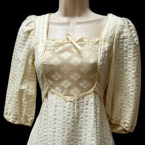 Vintage 1970s Terri Juniors Prairie Dress XS Crochet Ribbon Cottagecore