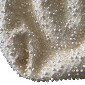 Vintage Cream Beaded Embellished Drawstring Close Sack Satchel Pouch
