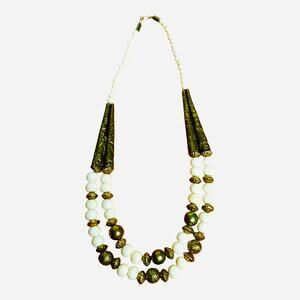 Vintage Cream Beaded Gold Tone Necklace Boho Hippie Style