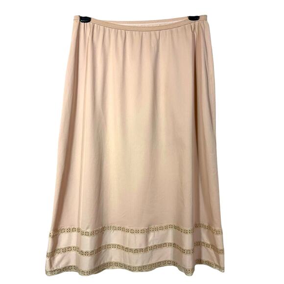 Vintage Cream Beige Half Slip 26" Wide Lace Strip Hemline Small Nylon