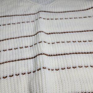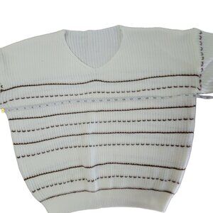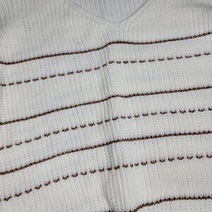 Vintage Cream & Brown Striped Knit Sweater metalic gold stripes size Medium