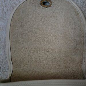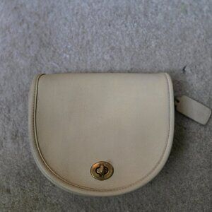 cream leather, turnlock closure, brass hardware, vintage accessory, Coach purse,