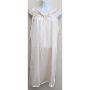 Vintage Cream Embroidered 2 Piece Nightgown & Robe Set Medium Lightweight Soft