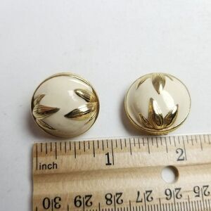 Vintage Cream Enamel and Gold Tone Dome Clip On Earrings, 80s Style, Estate