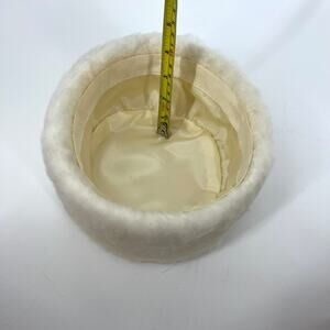 Vintage Cream Faux Fur Fascinator Pillbox Hat Lined One Size