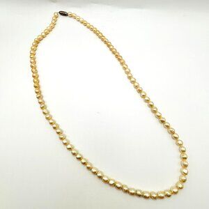 Vintage Cream Freshwater Pearl Necklace Hand Knotted 22" Screw Clasp Classic
