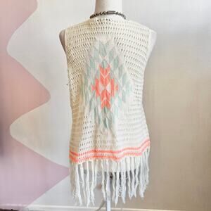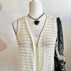 Vintage Cream Fringe Open Knit Vest Y2K Retro Boho Indie Festival Small