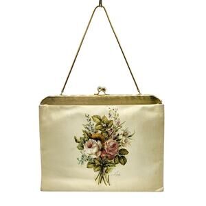 Vintage Made in Italy Cream and Gold Floral Artitalia Floral Image Handbag Purse