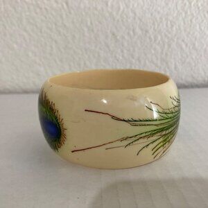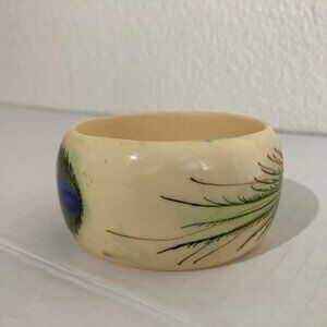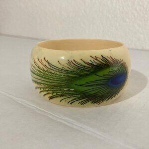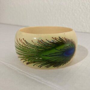 Vintage Cream Green And Blue Peacock Feather Design Bangle Bracelet