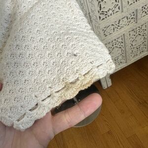 Vintage Cream Knit Crochet Coquette Ruffle Cropped V Neck Sweater Sz Medium