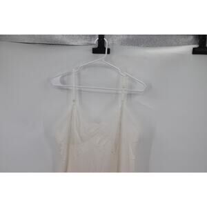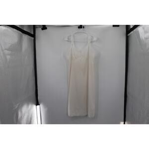 This nightgown has a lace bodice and hem. It is super romantic and cute. It has a nylon base. It has adjustable straps. It is super romantic. 19" p2p 43" length