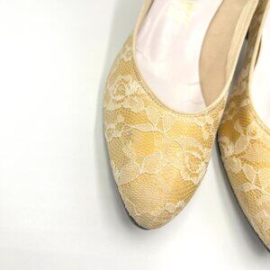 Vintage Cream Lace Over Gold Cottagecore Kitten Heels Pumps Shoes