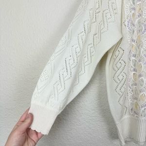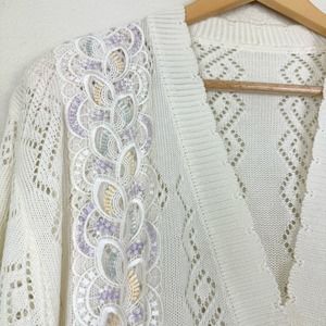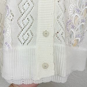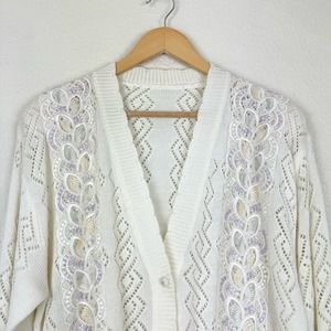 Vintage Cream Lavender Eyelet Knit Grandma Cardigan Sweater