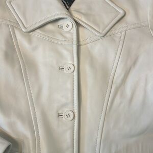 Vintage white leather jacket in excellent condition with a zebra-print lining. Never worn.