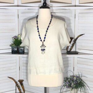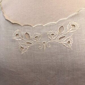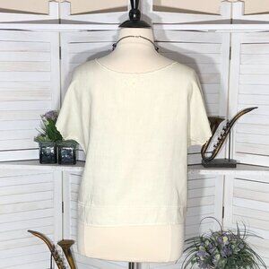 Vintage Cream Linen Embroidered Blouse Short Sleeve XL
