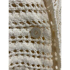 Vintage Cream Open Knit Cardigan Sweater Shawl Collar Button Closure