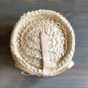 Vintage cream colored pillbox hat with large ribbon accent in the back. Union Made.
