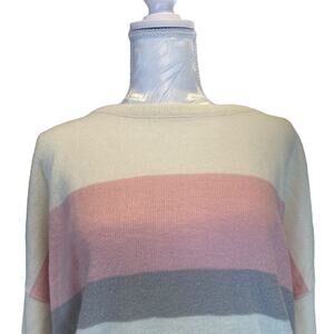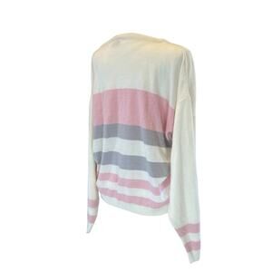 Vintage Cream Powder Pink Striped Kawaii Barbiecore Prep Knit Sweater Size XL