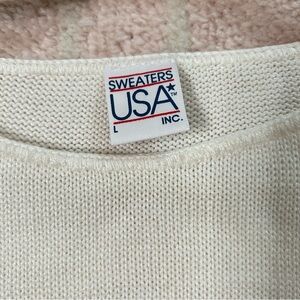 Vintage Cream Red Nautical Striped Sleeveless Sweater Size Large Sailboat Anchor