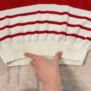 Vintage Cream Red Nautical Striped Sleeveless Sweater Size Large Sailboat Anchor
