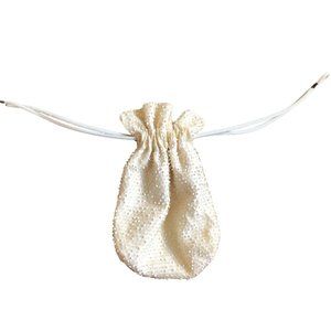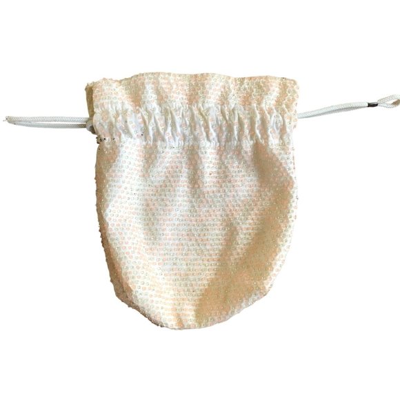 Vintage Cream Reversible Beaded Drawstring Clutch