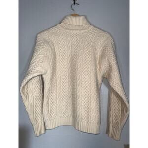 Vintage Cream Soft Cashmere Turtle Neck Cable Knit Scottish Sweater WomensMedium